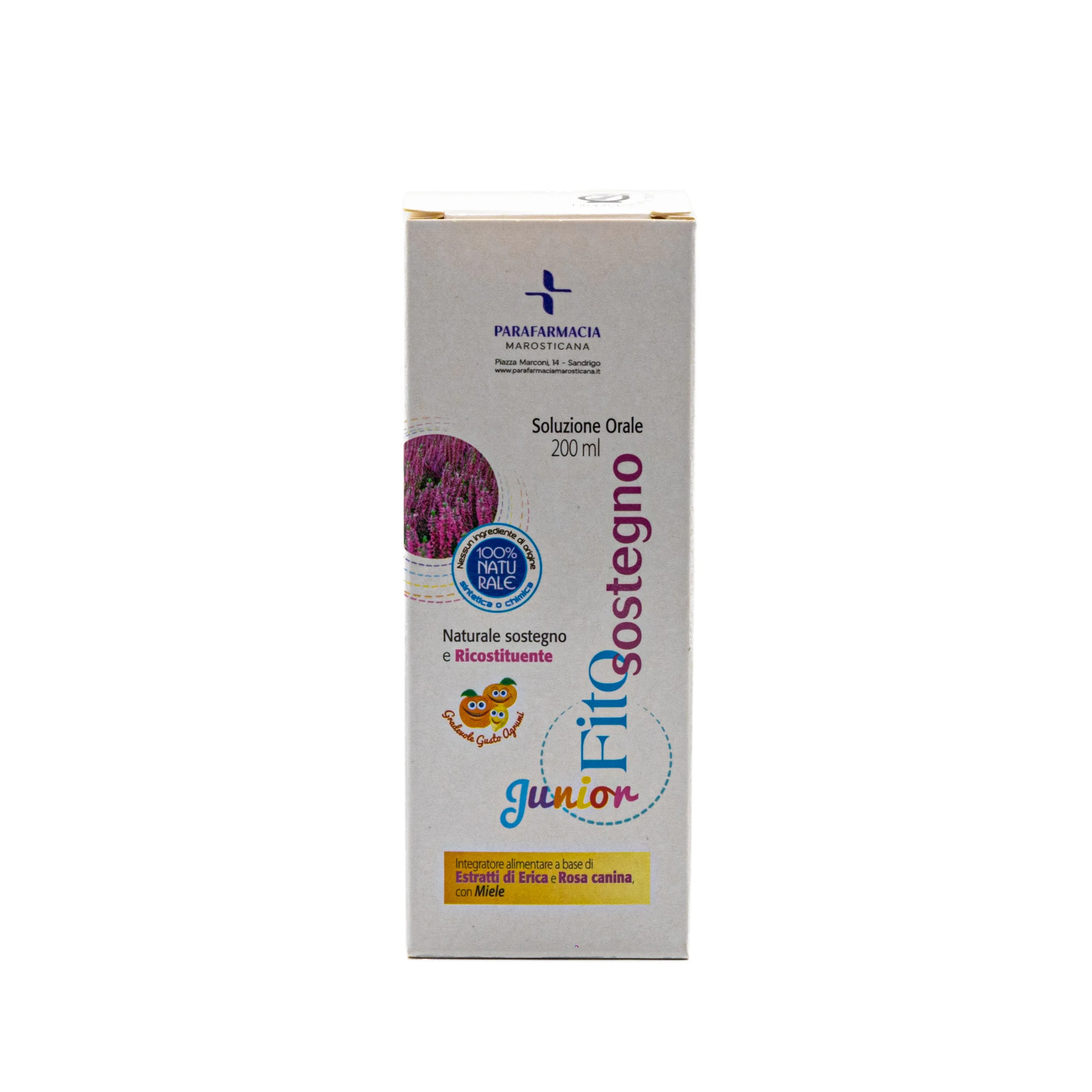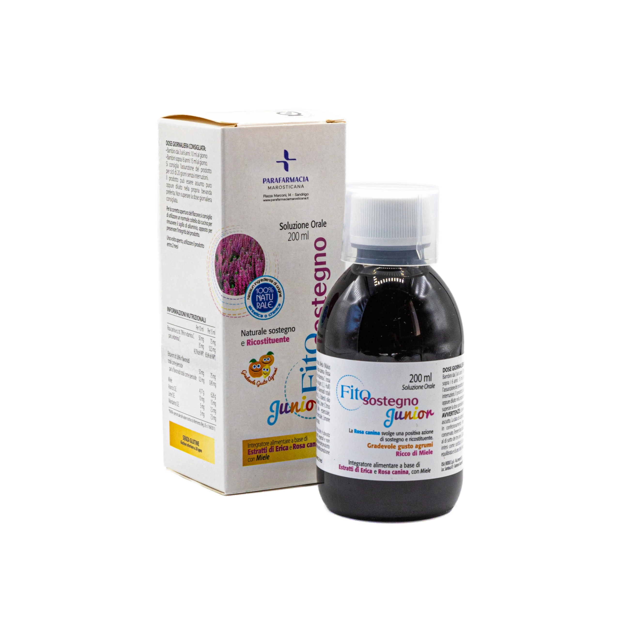 FitoSostegno Junior è un integratore alimentare a base di estratti vegetali selezionati, con miele, pensato per offrire un naturale sostegno alle difese immunitarie dei bambini a partire dai 3 anni di età. La Rosa canina svolge un’azione positiva di sostegno e ricostituente.
